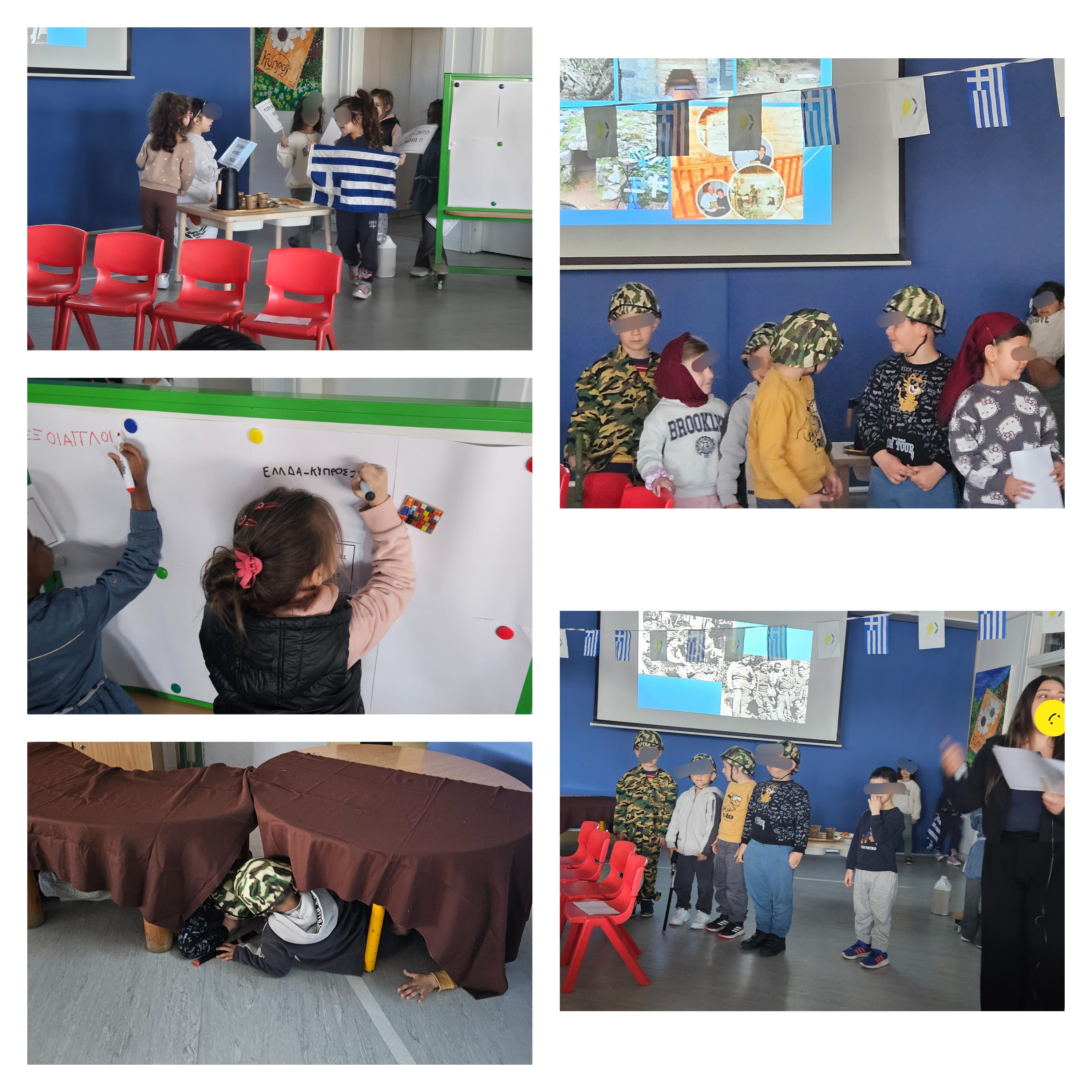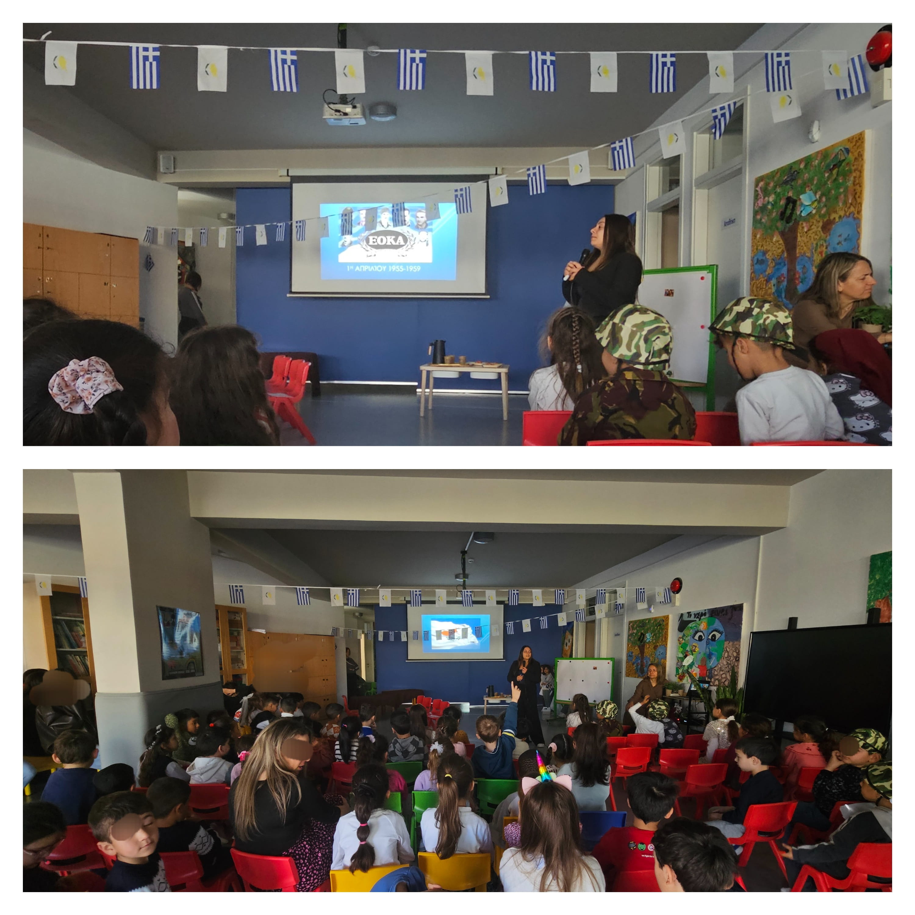 Όπως κάθε χρόνο, έτσι και φέτος γιορτάσαμε την επέτειο της 1ης Απριλίου 1955. Τα παιδιά γνώρισαν για τα γεγονότα που τελικά οδήγησαν τους Κύπριους να πάρουν τα όπλα και να ξεκινήσουν τον απελευθερωτικό αγώνα ενάντια στους Άγγλους κατακτητές. Στη συνέχεια, ετοίμασαν ποιήματα, δραματοποιήσης και τραγούδια για την ημέρα αυτή.