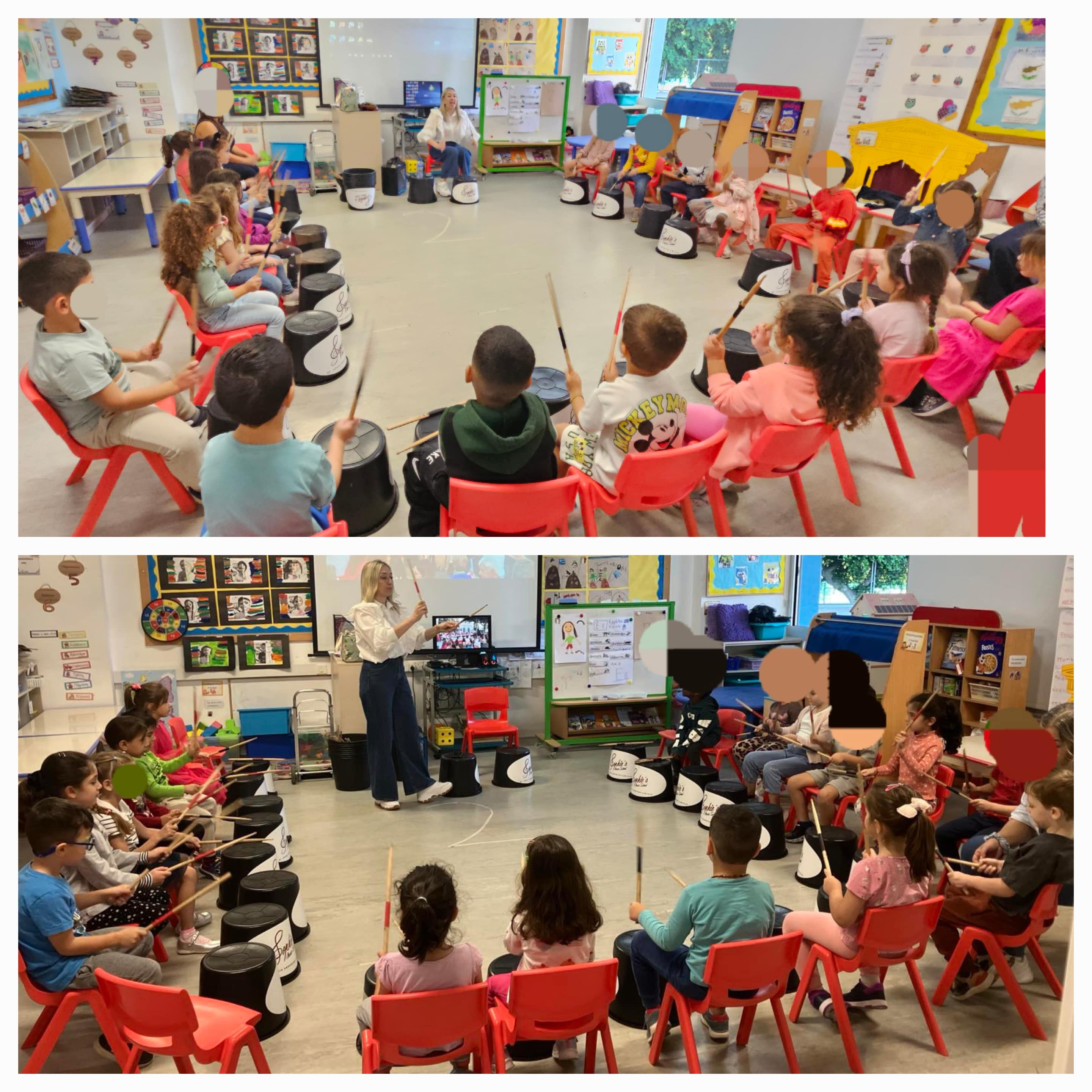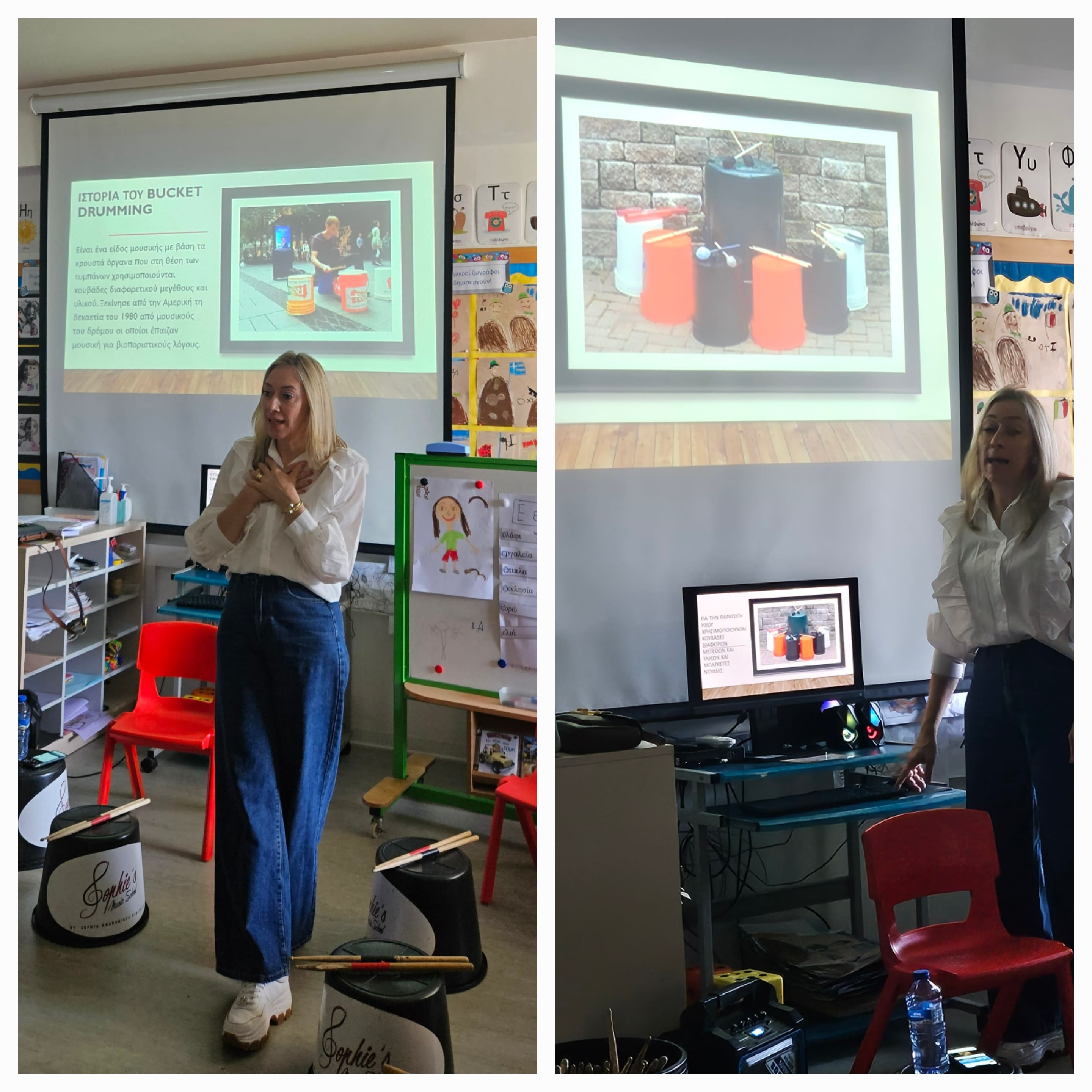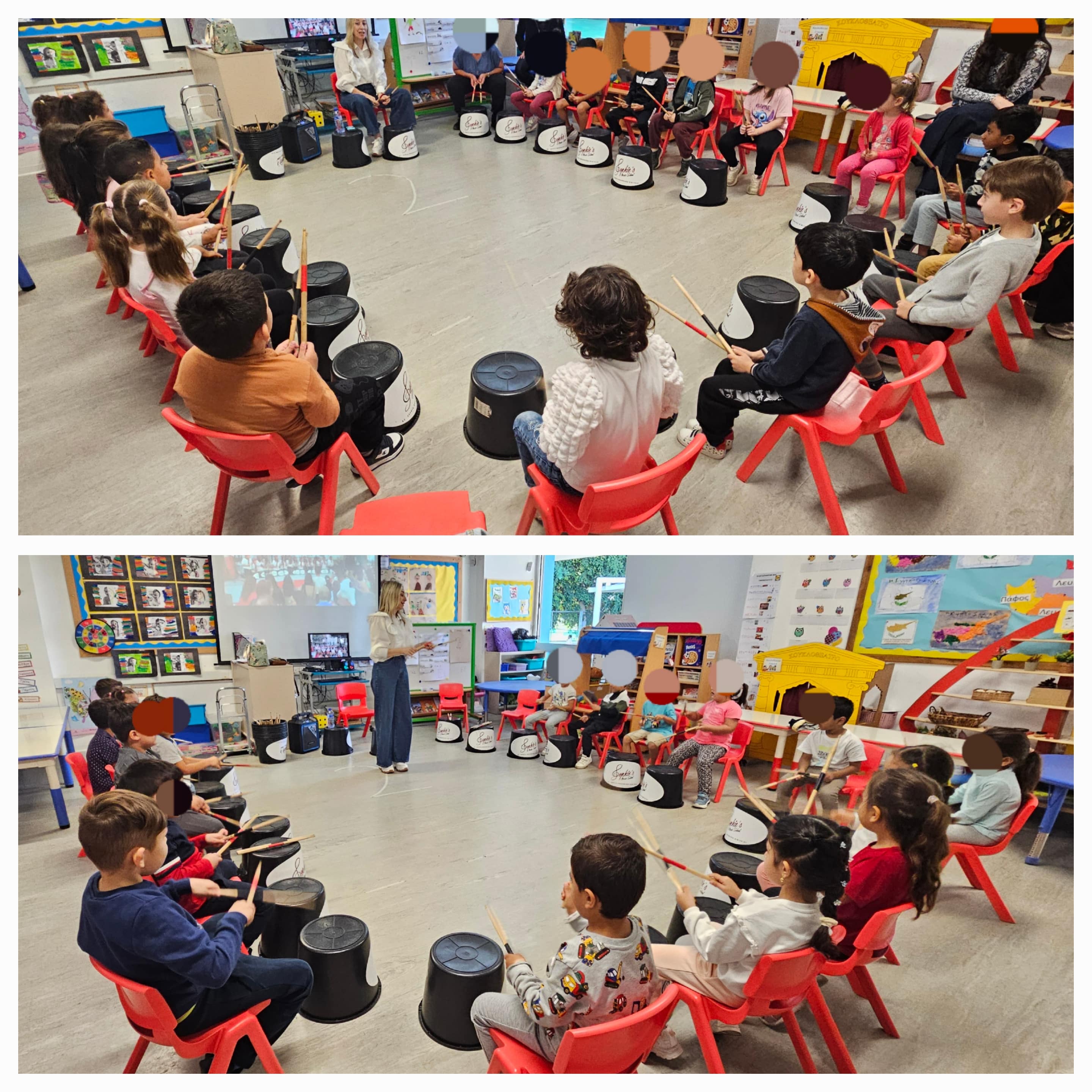Σήμερα Παρασκευή 24/10/2025, τα παιδιά του σχολείου μας είχαν την ευκαιρία να λάβουν μέρος στο μουσικοπαιδαγωγικό Βιωματικό Εργαστήρι Bucket Drumming, με την κ Σοφία Ανδρονίκου Δημητρίου. Στο Bucket Drumming, αντί για κανονικά κρουστά όργανα, χρησιμοποιούνται κουβάδες διαφορετικού μεγέθους και υλικού και τους οποίους κτυπάμε με μπαγκέτες ντραμς.
